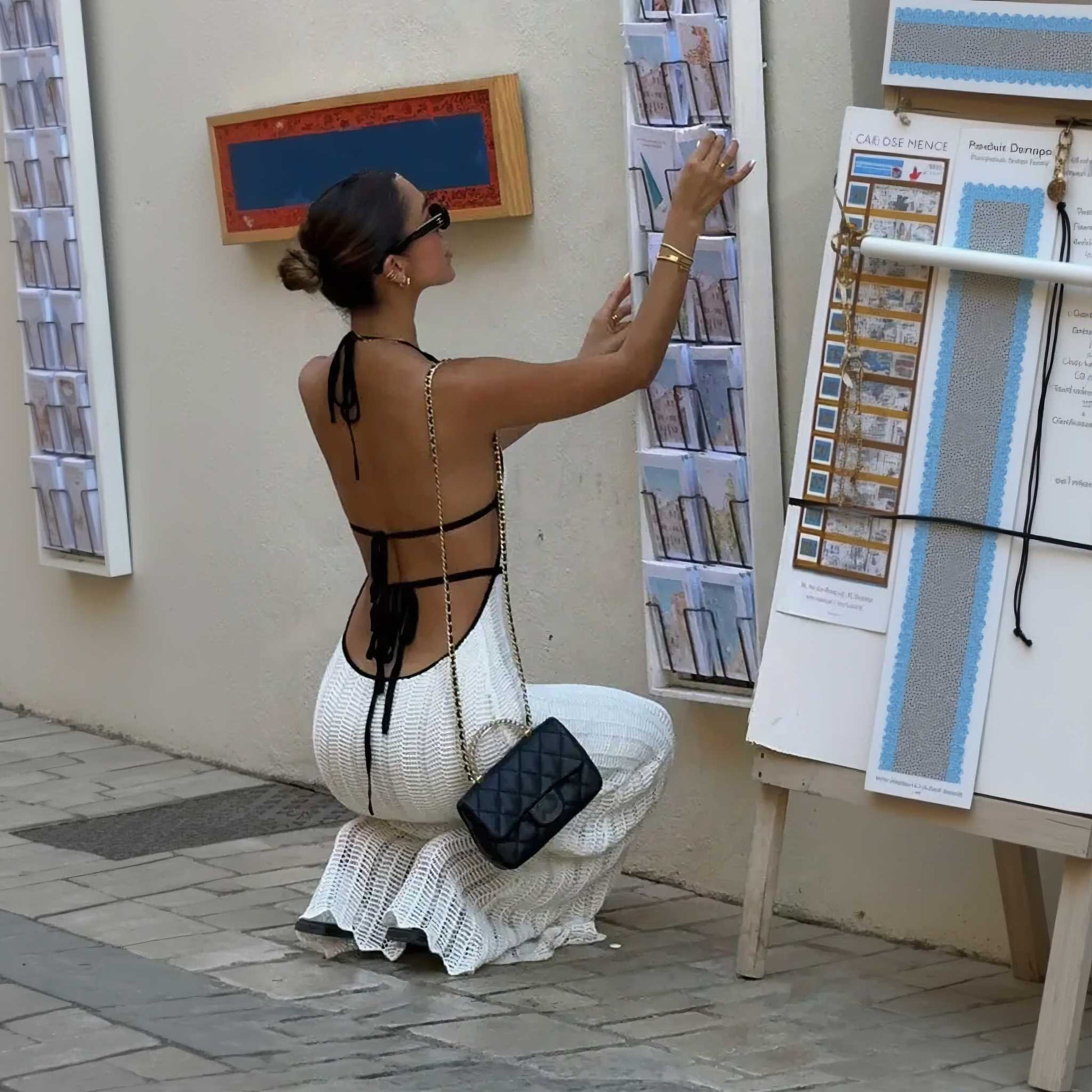 ALVA™ | Stickad halterneckklänning i semitransparent boho-stil