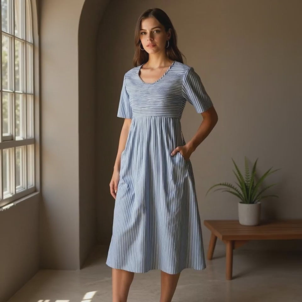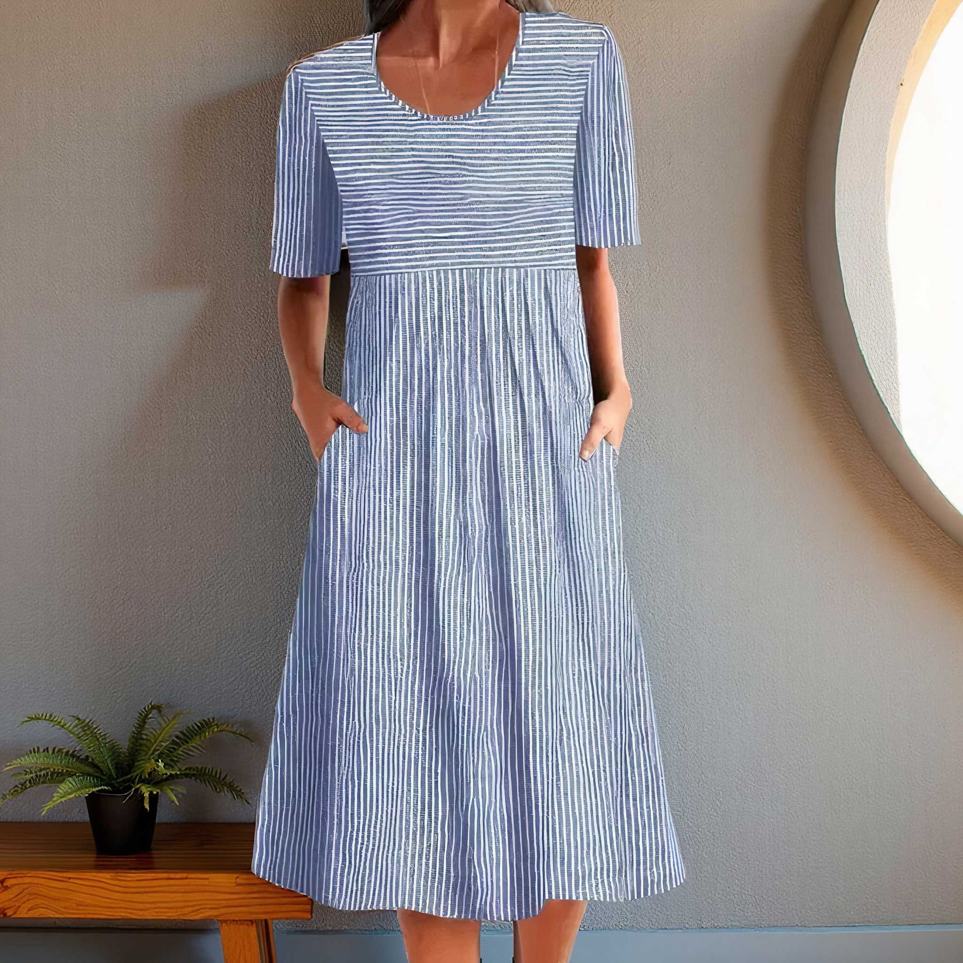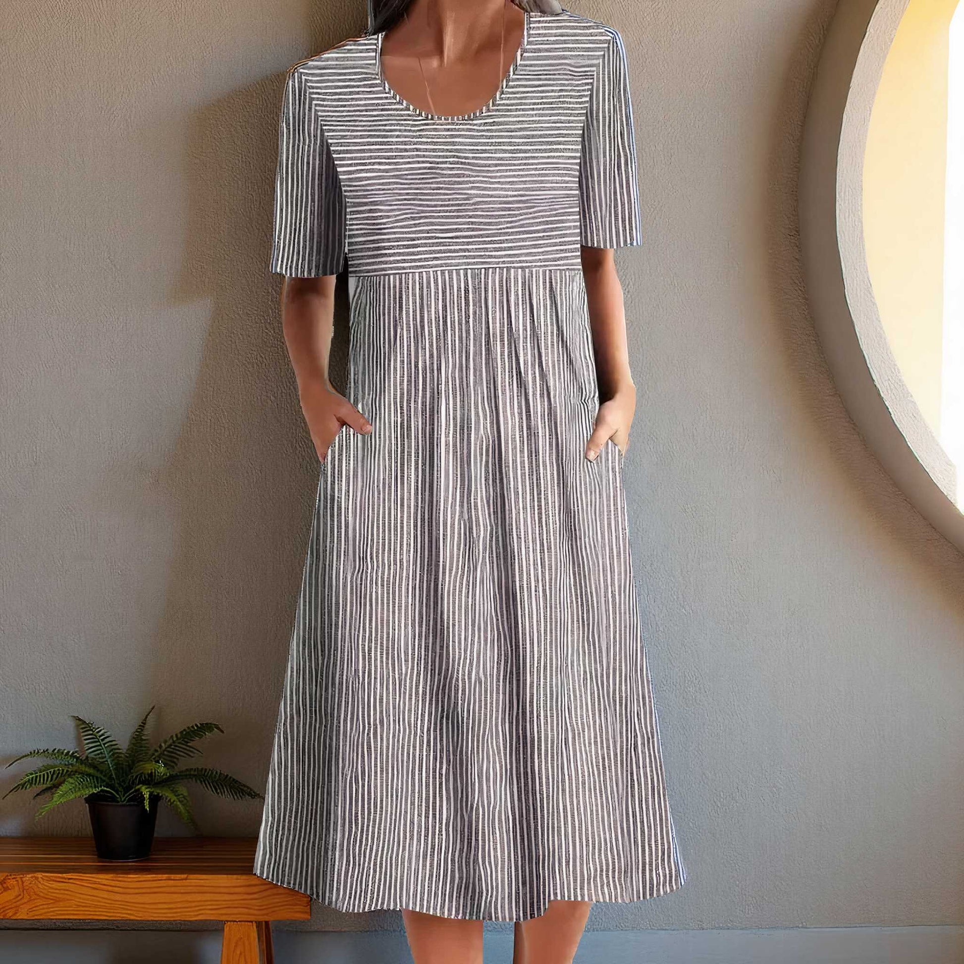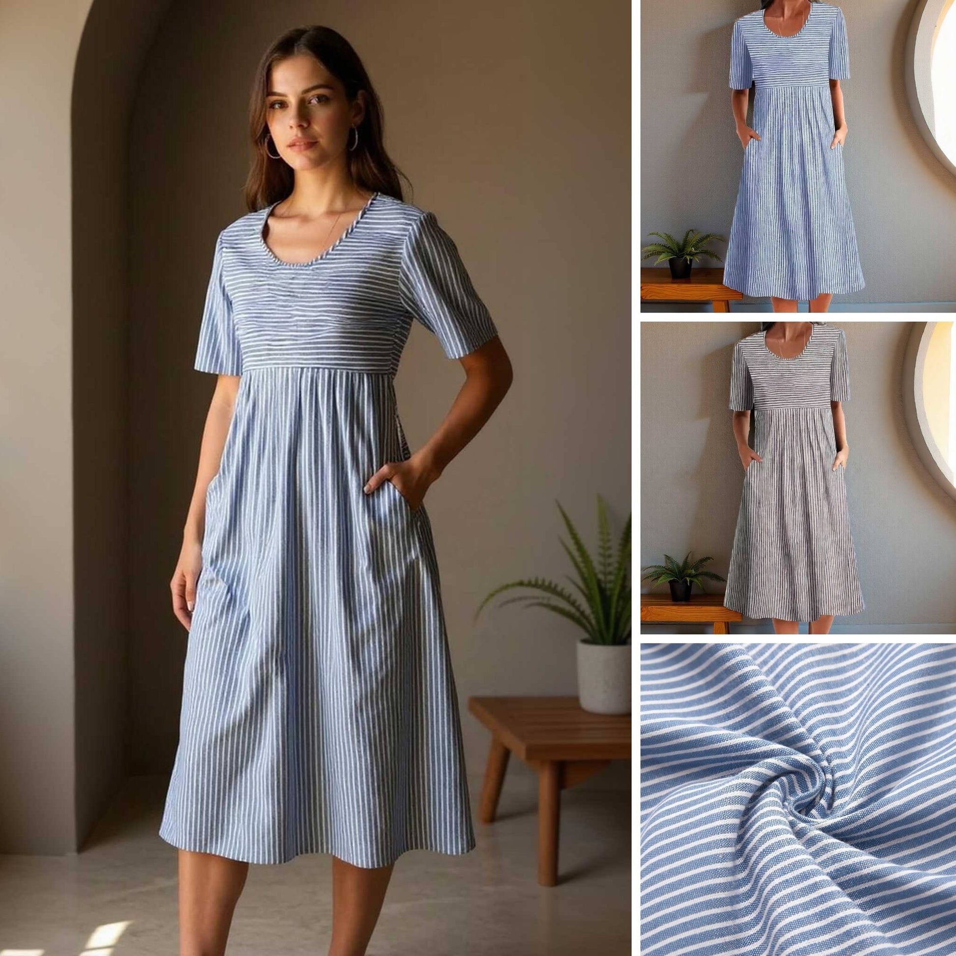 Med Elsi™ – en avslappnad randig sommarklänning – flyter du genom dagen med enkelhet och charm. 🌞 Den luftiga designen smickrar utan att strama, perfekt för varma dagar där stil och komfort går hand i hand.