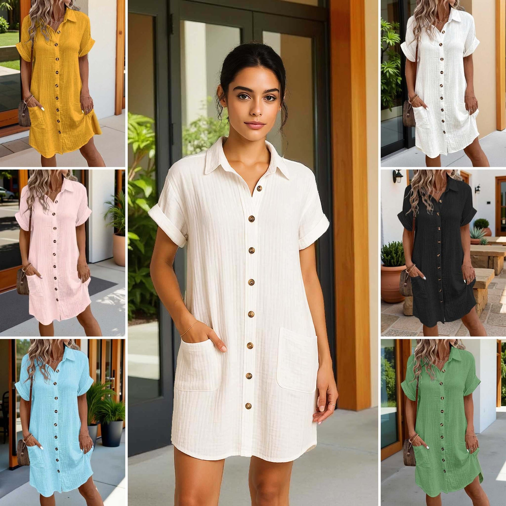 LOVISA™ | Kortärmad sommarklänning med v-ringning och knappar